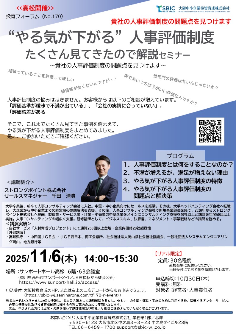 セミナー登壇のお知らせ 11月6日<大阪中小企業投資育成株式会社主催>“やる気が下がる”人事評価制度たくさん見てきたので解説セミナー